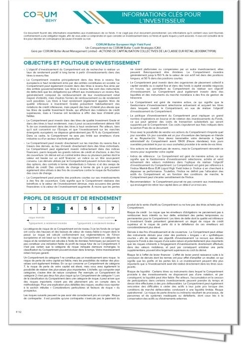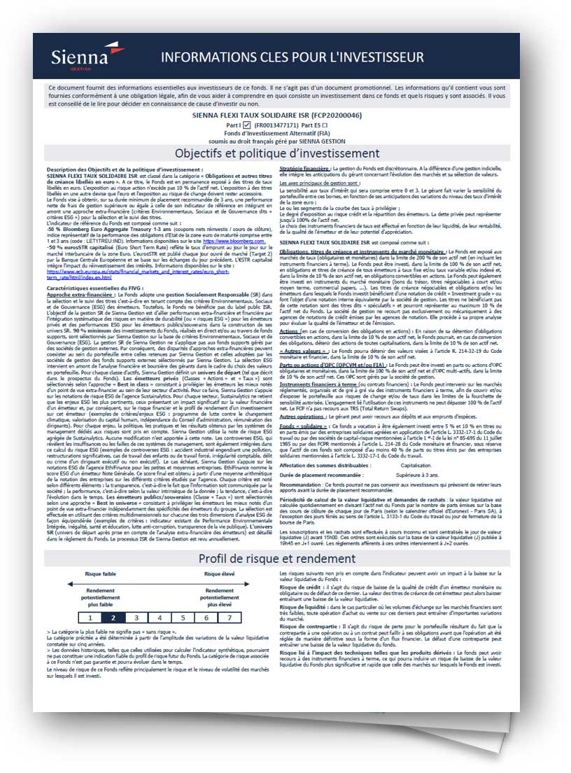 Les documents d'informations clés pour l'investisseur (DICI) des fonds du contrat