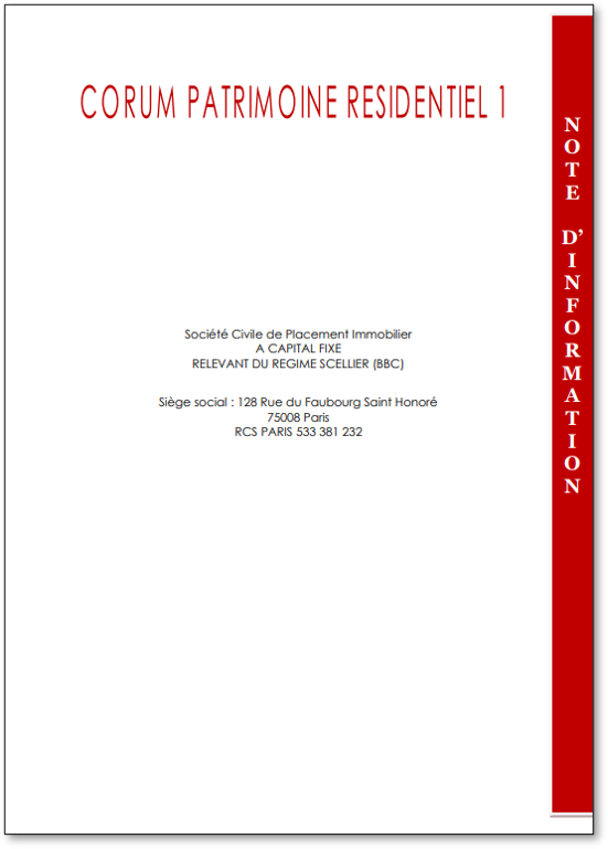 CORUM Patrimoine Résidentiel 1 est fermée au public depuis le 31 décembre 2012.